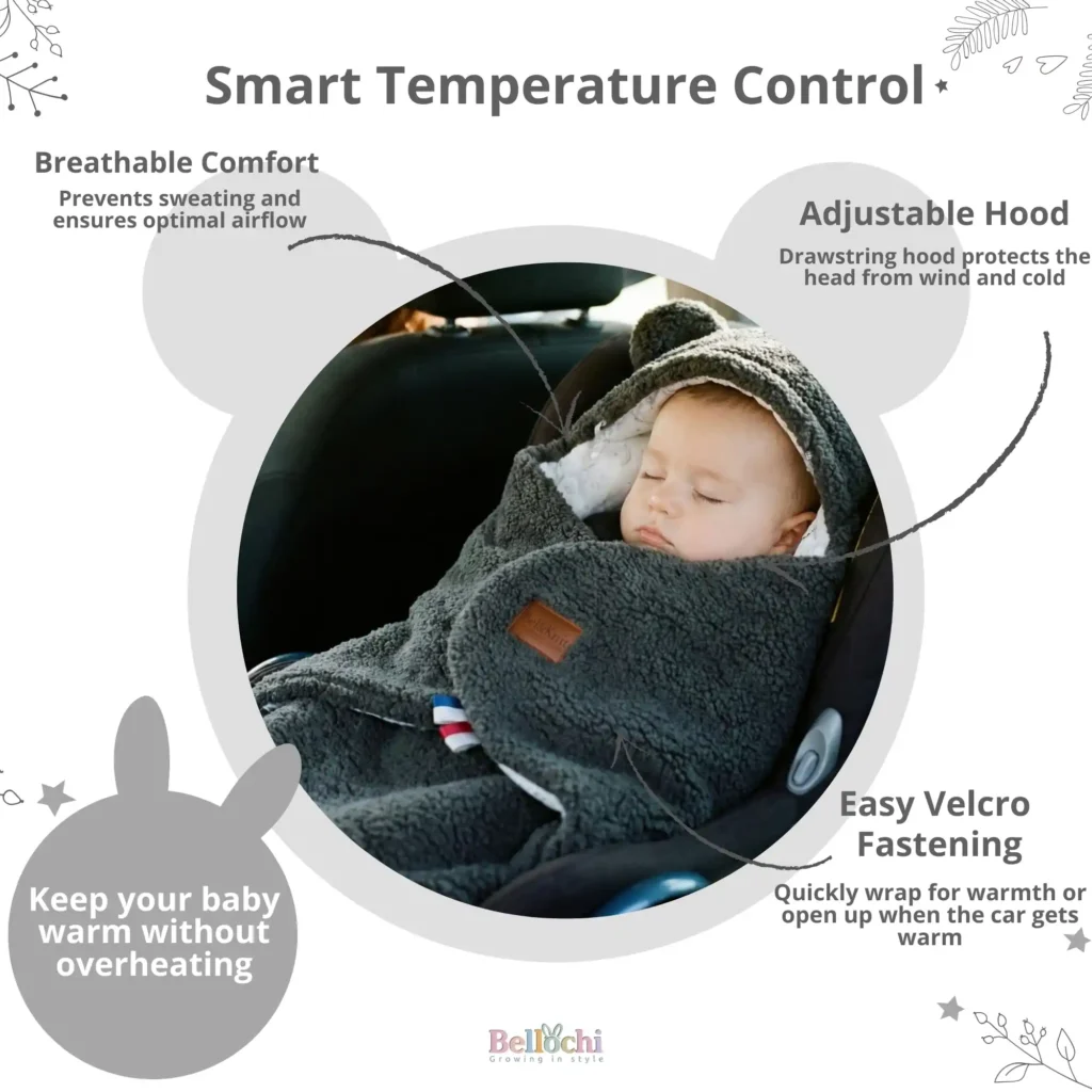 Temperature Control: Features a convenient Velcro fastening. Easily wrap your baby up when it’s cold or unfasten the blanket quickly in a warm car to prevent overheating or sweating.